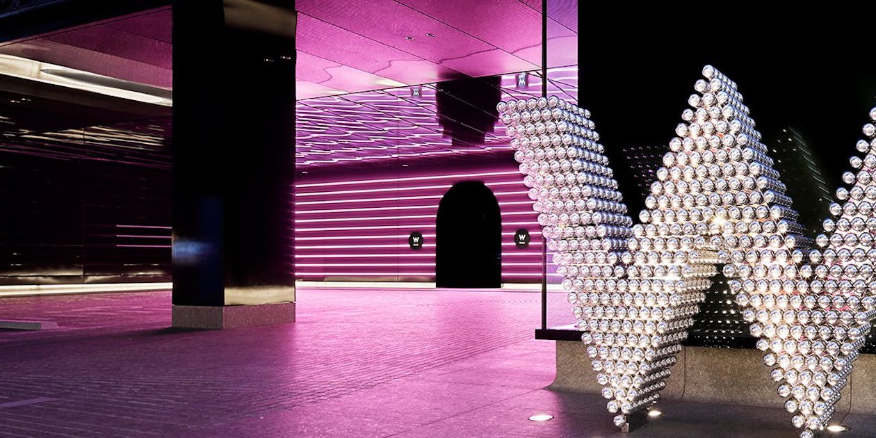 エントランスは木を基調としたラグジュアリー空間に、ロビーサロンには滝が流れる内装に拘ったホテル。